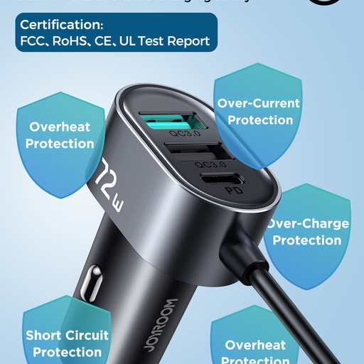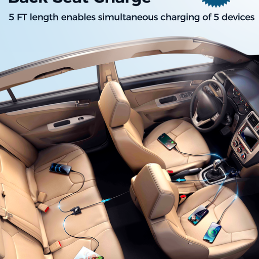 4. Cáp nối dài 1,5m, dễ dàng sạc thiết bị từ hàng ghế trước ra sau.