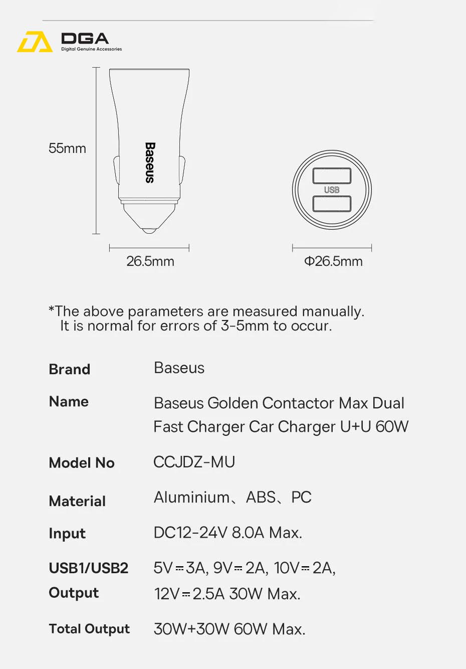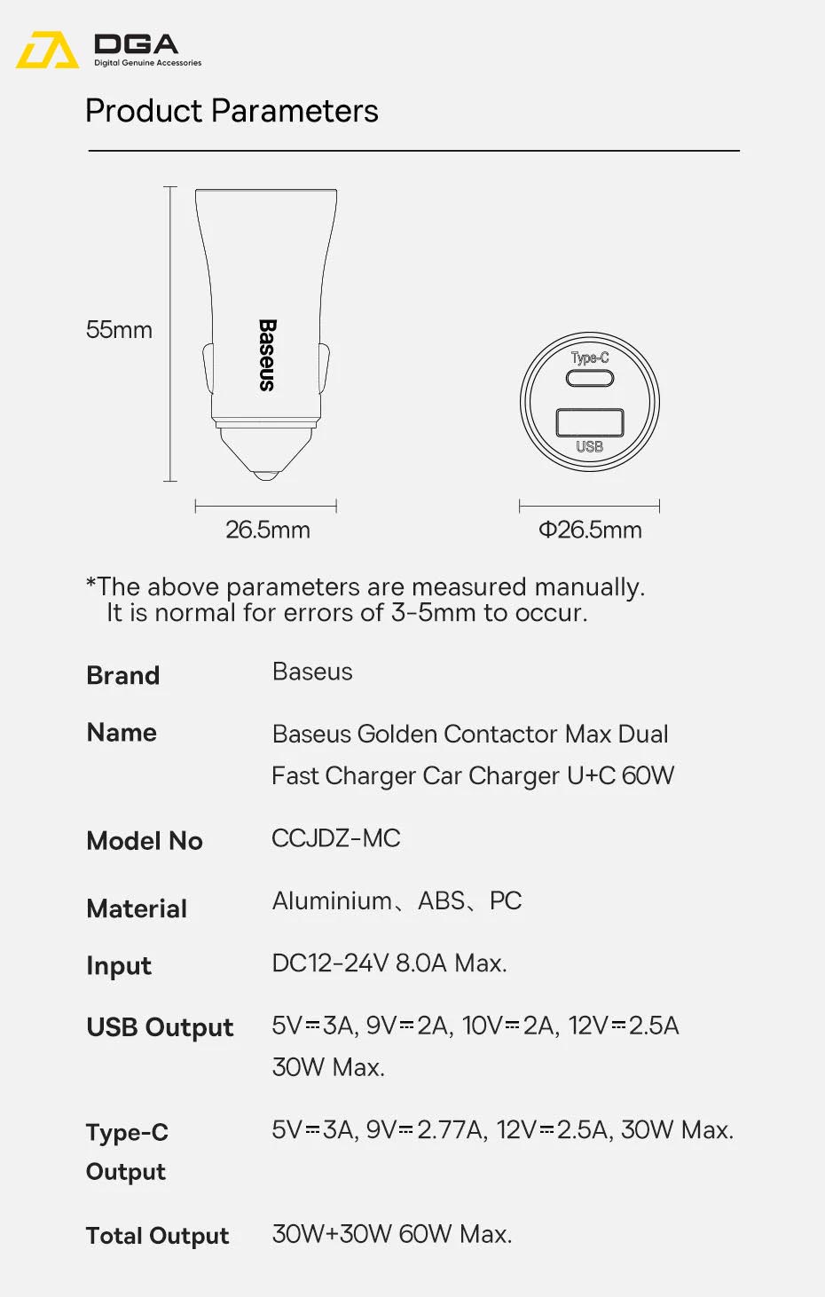 Giới Thiệu Tẩu Sạc Ô Tô Baseus Golden Contactor Max Dual Fast Charger Car Charger 60W