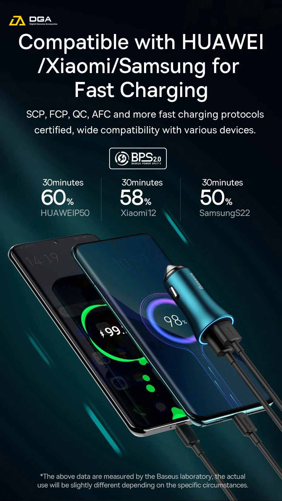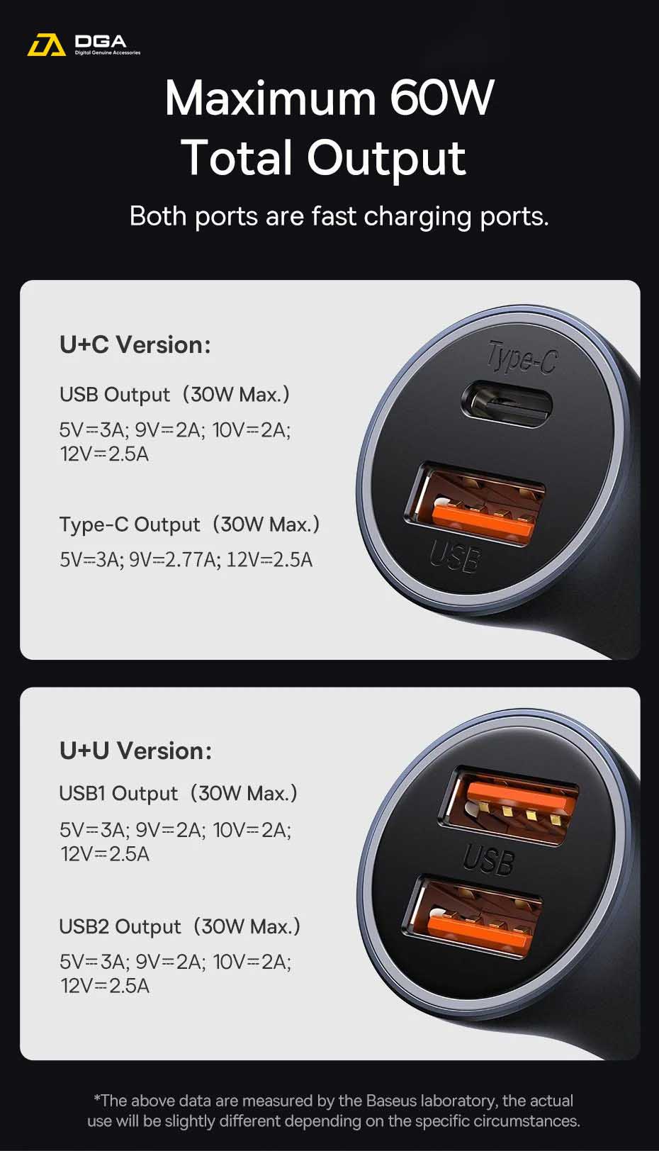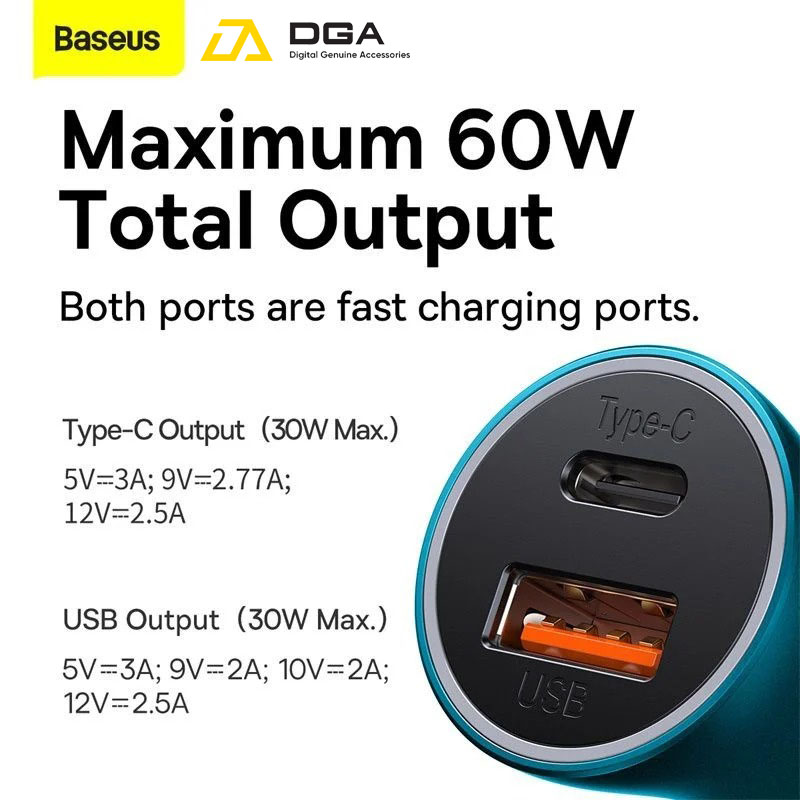 Tính Năng Tẩu Sạc Ô Tô Baseus Golden Contactor Max Dual Fast Charger Car Charger 60W
