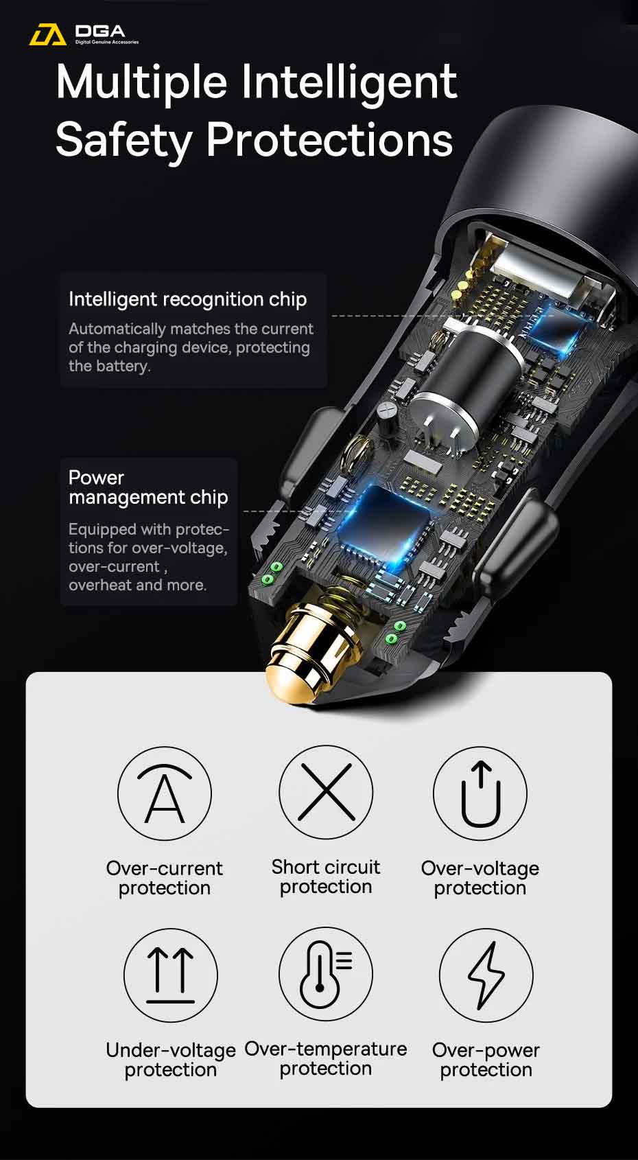 – Chíp nhận diện thông mình tự động điều chỉnh dòng diện phù hợp với thiết bị bảo vệ pin, đặc biệt năm nay được trang bị hệ thống an toàn Protech-tions. Với công nghệ này, thiết bị sẽ được ổn định, kiểm soát nhiệt độ, tránh hiện tượng quá nhiệt trong quá trình sạc. Bên cạnh đó, hệ thống cũng cung cấp khả năng ổn định dòng ra, nhằm đảm bảo quá trình sạc diễn ra suôn sẻ, không đứt quãng, tránh hiện tượng chập điện.