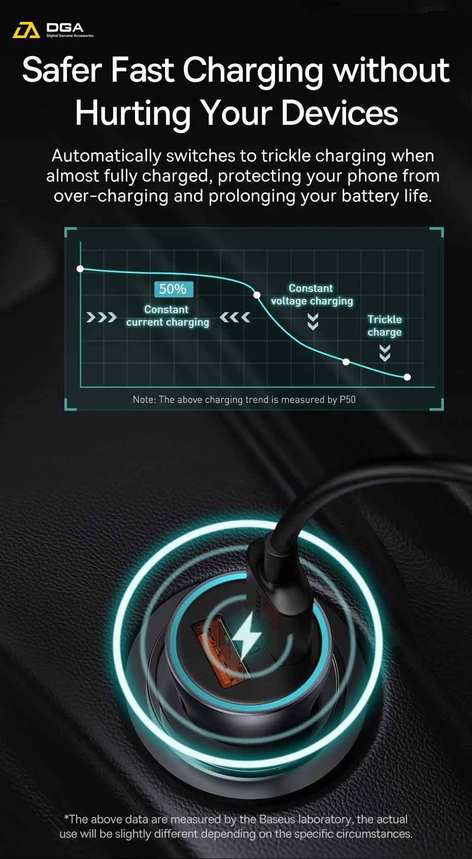 – Sạc ô tô Baseus Golden mang đến cho người dùng trải nghiệm tuyệt vời nhất, hỗ trợ sạc nhanh cho nhiều dòng điện thoại, máy tính bảng với tổng công suất dòng điện là 60w giúp nạp đầy pin thiết bị của bạn nhanh chóng