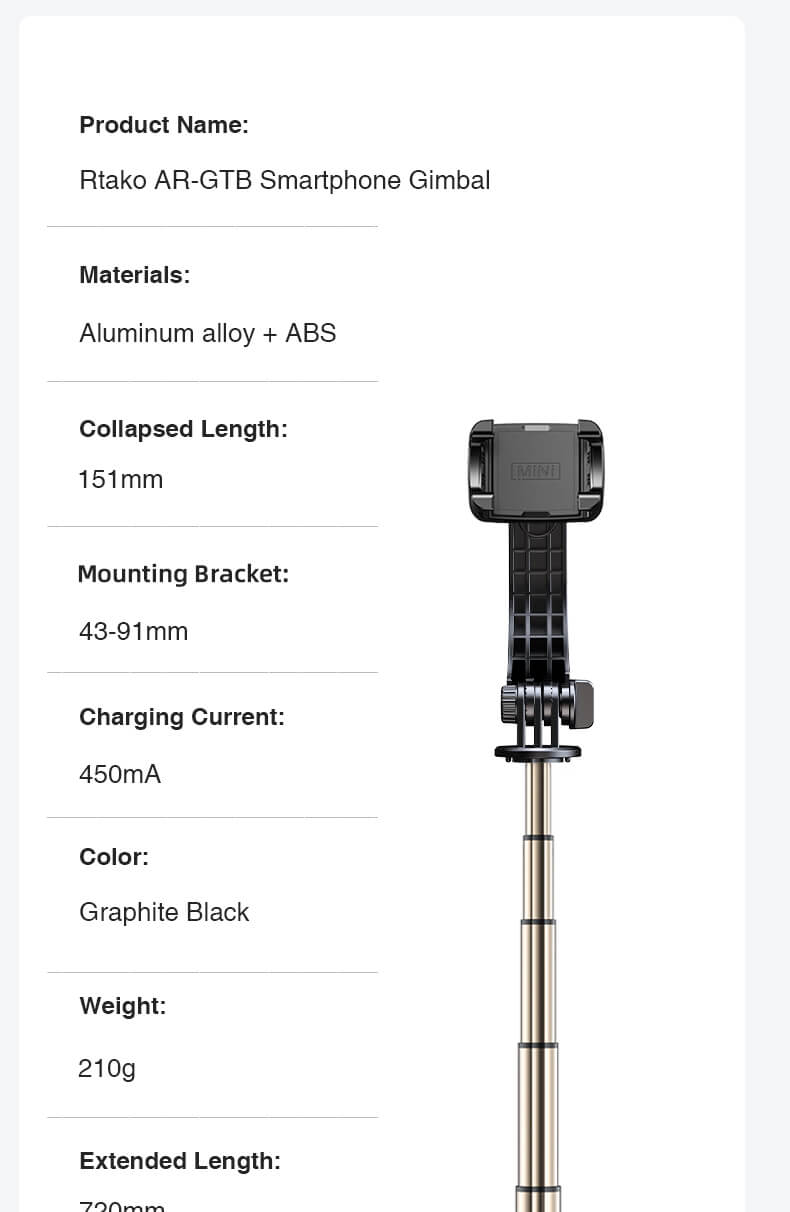 | Tên sản phẩm | Gimbal chống rung Mini Rtako L08 Mini Anti-shake Gimbal |