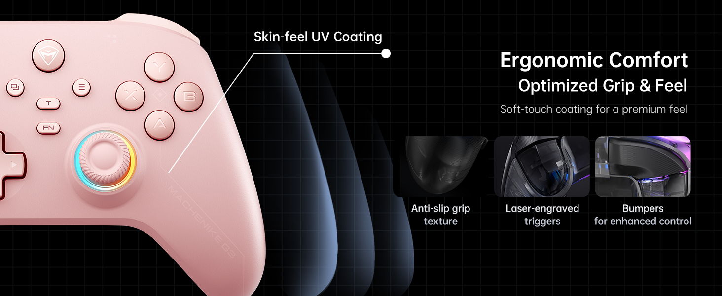 Machenike G3 V2 Pro Pink là sự kết hợp hoàn hảo giữa công nghệ – hiệu năng – thời trang. Không chỉ dành riêng cho nữ game thủ, đây là lựa chọn tuyệt vời cho mọi ai yêu thích phong cách nhẹ nhàng nhưng vẫn muốn sở hữu sức mạnh của một tay cầm chuyên nghiệp.