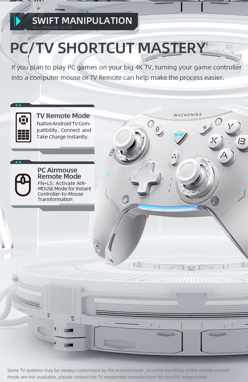 Tùy chỉnh là từ khóa quan trọng với tay cầm chơi game Machenike G5 Pro, cho phép người chơi tinh chỉnh mọi chi tiết từ vùng chết của joystick đến nút nhấn, tối ưu hóa cho mọi lối chơi và sở thích cá nhân.
