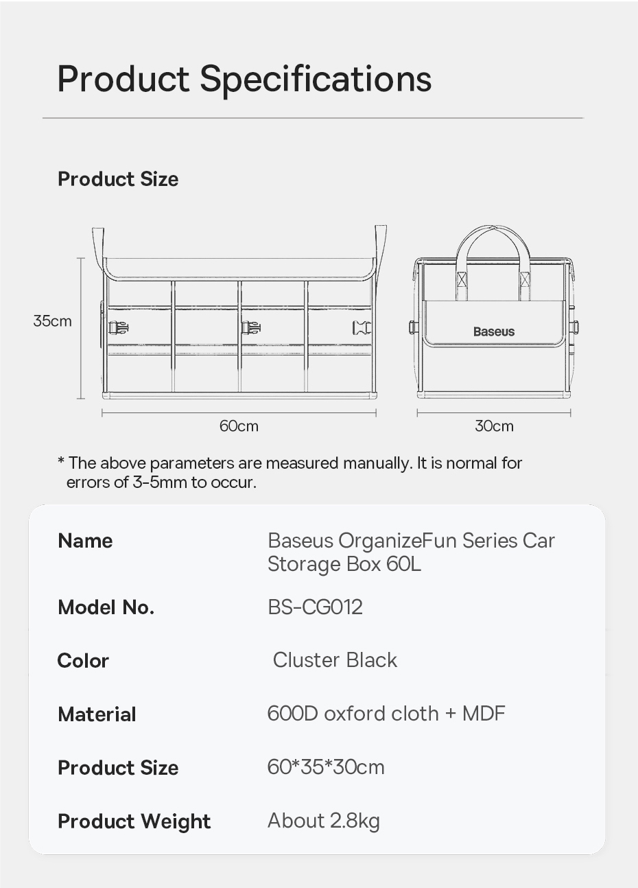 Túi Xếp Gọn Đựng Đồ Baseus OrganizeFun Series là một sản phẩm không thể thiếu cho những ai muốn có một không gian xe ô tô gọn gàng và tiện nghi. Với thiết kế thông minh, chất liệu cao cấp và dung tích lớn, sản phẩm sẽ giúp bạn tận hưởng những chuyến đi thoải mái và thú vị hơn.