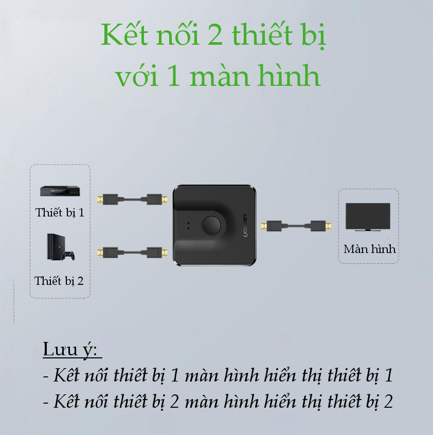 - Cho phép kết nối từ 2 thiết bị đến 1 màn hình (lưu ý: khi kết nối thiết bị 1 màn hình sẽ hiển thị thiết bị 1; khi kết nối thiết bị 2 màn hình sẽ hiển thị thiết bị 2)