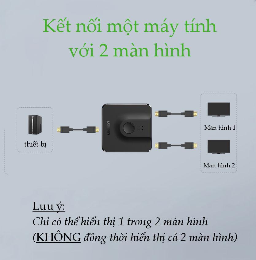 - Cho phép kết nối từ 1 thiết bị đến 2 màn hình (lưu ý: chỉ hiển thị từng màn hình, KHÔNG đồng bộ cả 2 màn hình)