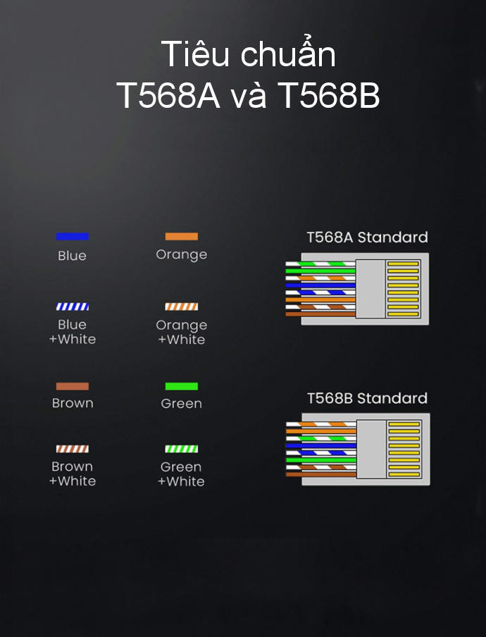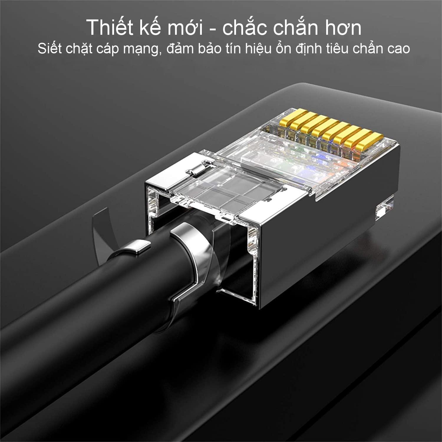 Đầu cắm RJ45 được bọc inox chuẩn đầu nối dây 8P8C tốc độ đạt 10Gbps, truyền dữ liệu cao với tín hiệu ổn định