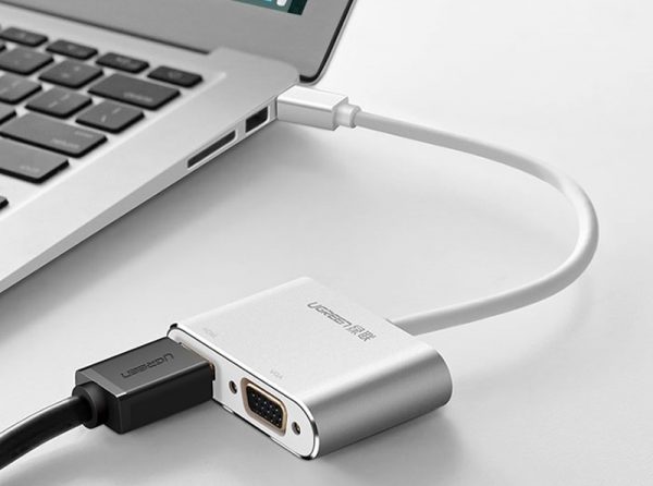Cáp Chuyển Mini DisplayPort Sang HDMI + VGA Ugreen là phụ kiện chính hãng Ugreen cao cấp được thiết kế để kết nối máy tính, laptop có cổng Thunderbolt như Macbook Pro, Macbook Air, iMac, Laptop Thinkpad…etc với màn hình máy tính, máy chiếu, HDTV thông qua cổng HDMI hoặc VGA.
