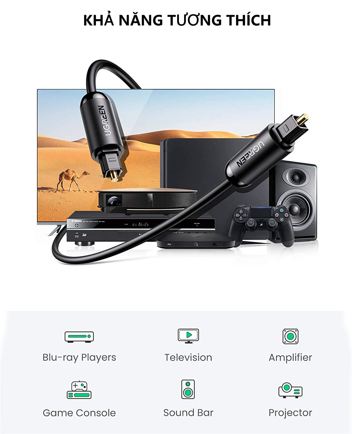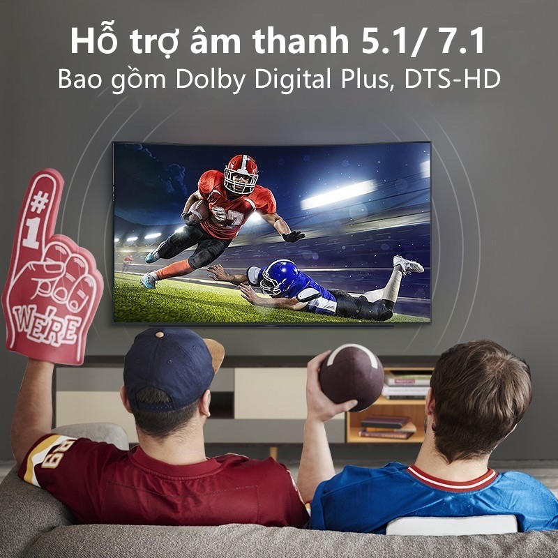 Kết nối âm thanh từ TV, Xbox One, PS4, đầu đĩa DVD sang amply, soundbar hỗ trợ âm thanh 5.1/ 7.1 bao gồm Dolby Digital Plus, DTS-HD. Cáp có thể truyền tín hiệu mà không bị nhiễu sóng điện từ hoặc tần số vô tuyến