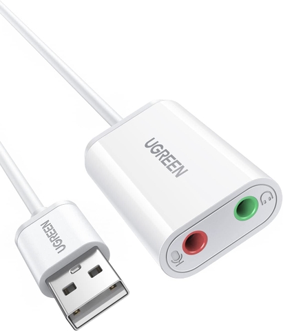 Bộ điều hợp âm thanh USB UGREEN lý tưởng để thay thế card âm thanh hoặc cổng âm thanh bị lỗi của bạn, nó bổ sung một đầu vào micrô đơn âm và một cổng đầu ra âm thanh nổi vào máy tính của bạn thông qua cổng USB, cho phép bạn kết nối đầu vào âm thanh hiện có của mình. tai nghe, tai nghe, loa hoặc micrô có giắc cắm 3,5 mm với PC của bạn thông qua giao diện USB.