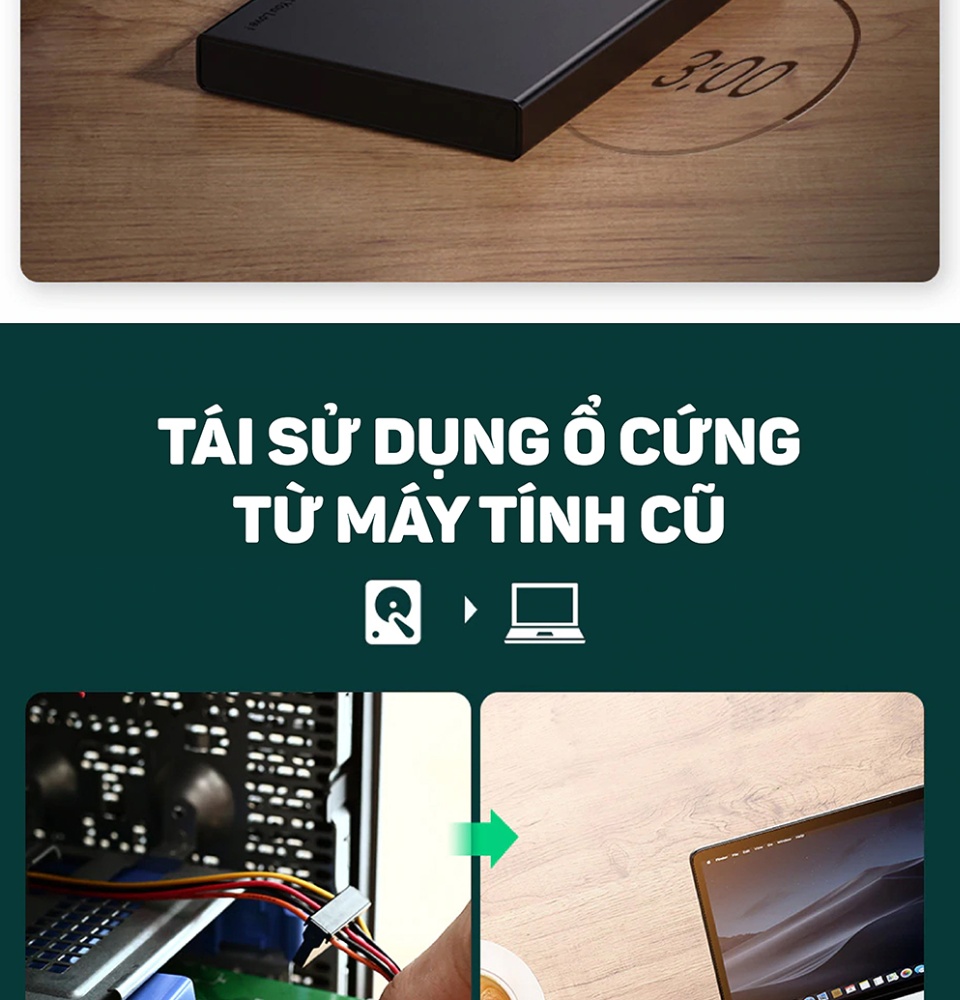 LƯU Ý: Sản phẩm chỉ thích hợp với dạng ổ cứng ngoài chuẩn giao diện SATA. (Không thích hợp với dạng ổ cứng giao diện IDE)