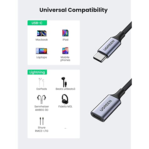 - Ugreen 70953 USB type C to Lightning MFI Female Audio adapter for apple US342
