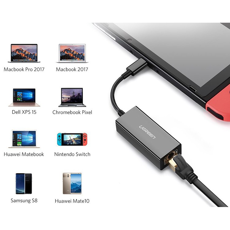 1. Bộ chuyển đổi Type-C Ugreen 50307 là phụ kiện chính hãng cao cấp giúp bạn kết nối Macbook, Lenovo Yoga 900, Notebook, Google Chromebook và nhiều dòng máy Laptop, PC đời mới khác có tích hợp cổng USB-C với mạng internet qua cổng lan RJ45 tốc độ ổn định lên đến 1000Mbps, phục vụ nhu cầu internet tốc độ cao như lướt web, chơi game, xem phim...