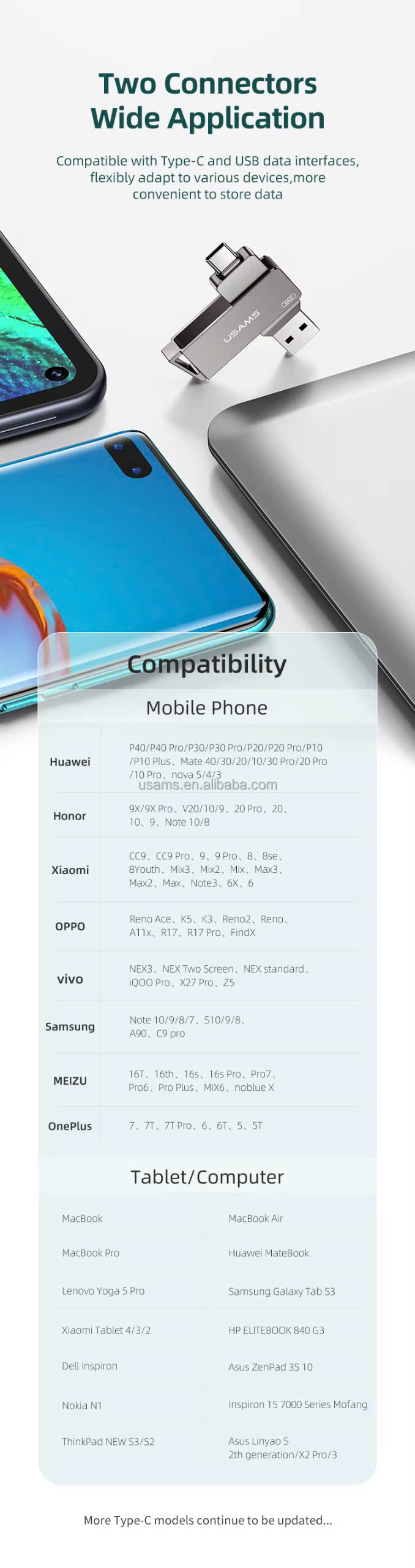 Một trong những điểm nổi bật nhất của USAMS ZB199 chính là thiết kế 2-in-1, tích hợp cả USB-A (chuẩn 3.0) và Type-C. Điều này giúp thiết bị có thể kết nối với:
