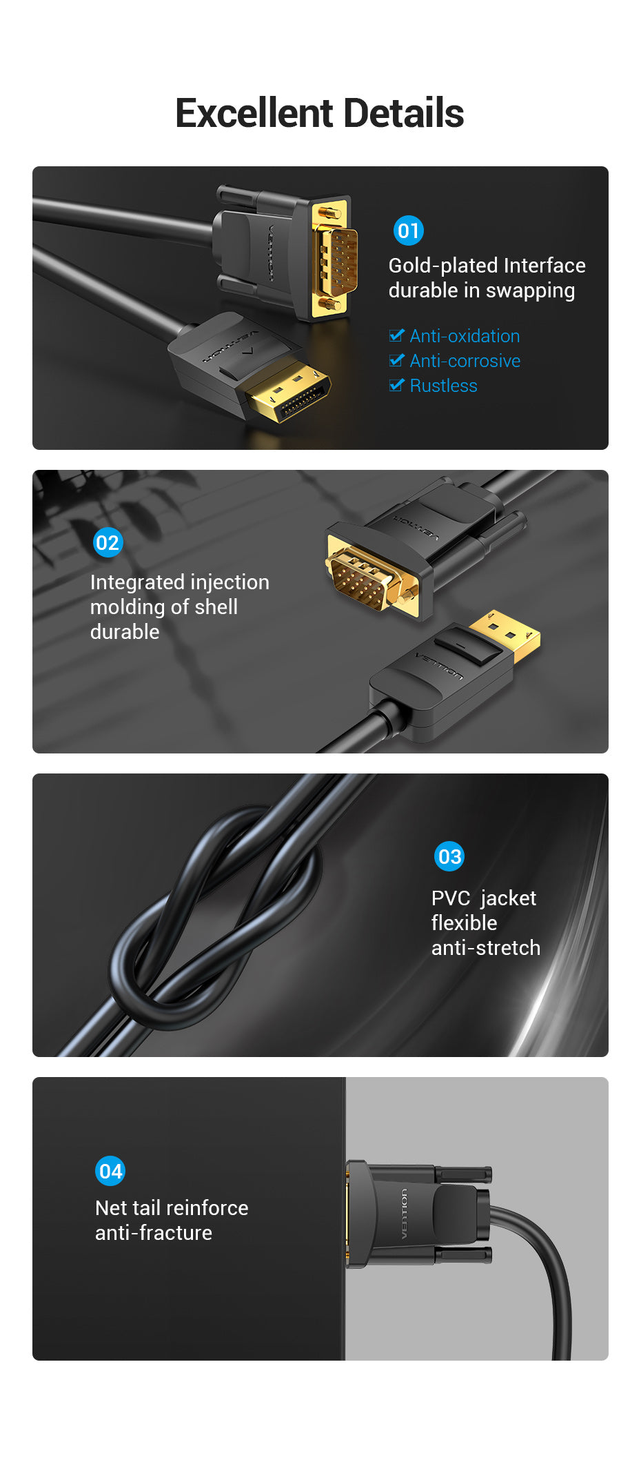 Đầu cáp mạ vàng, chống oxy hóa, tăng cường độ bền.