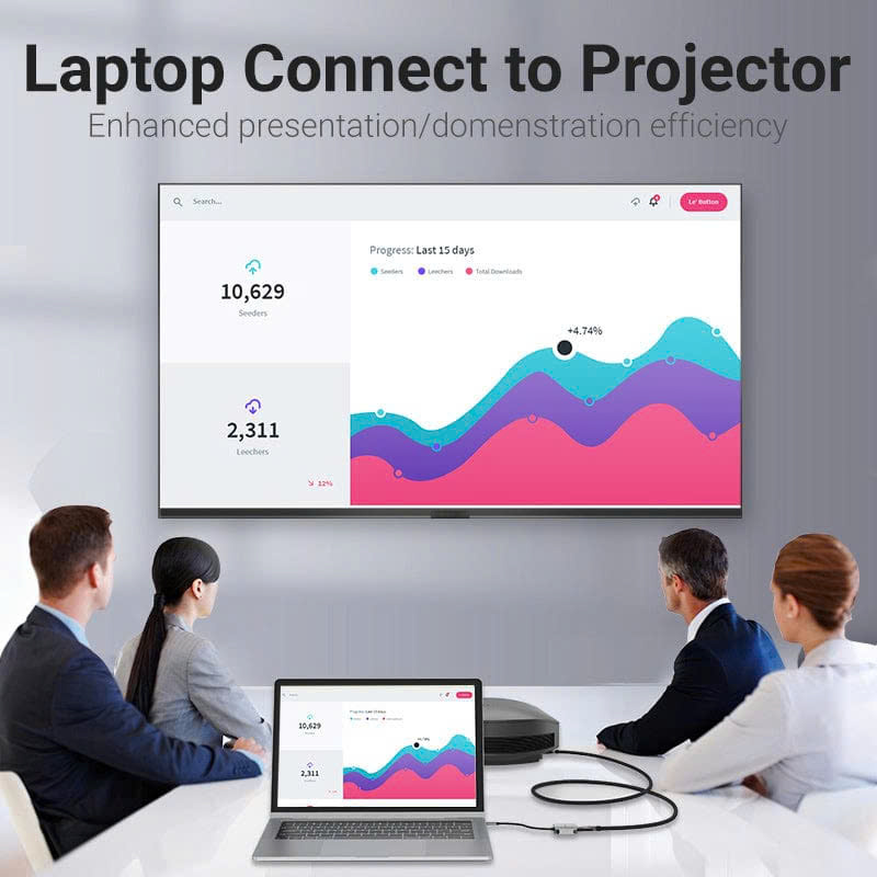 Vention USB-C to HDMI Converter cho phép người dùng kết nối dễ dàng giữa thiết bị di động hoặc laptop sử dụng cổng USB-C với màn hình, máy chiếu hoặc TV có cổng HDMI. Bạn chỉ cần cắm và sử dụng mà không cần cài đặt phần mềm phức tạp.