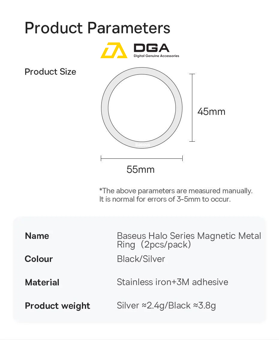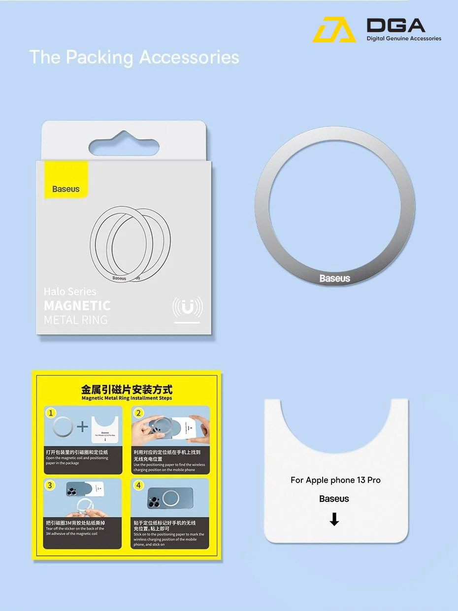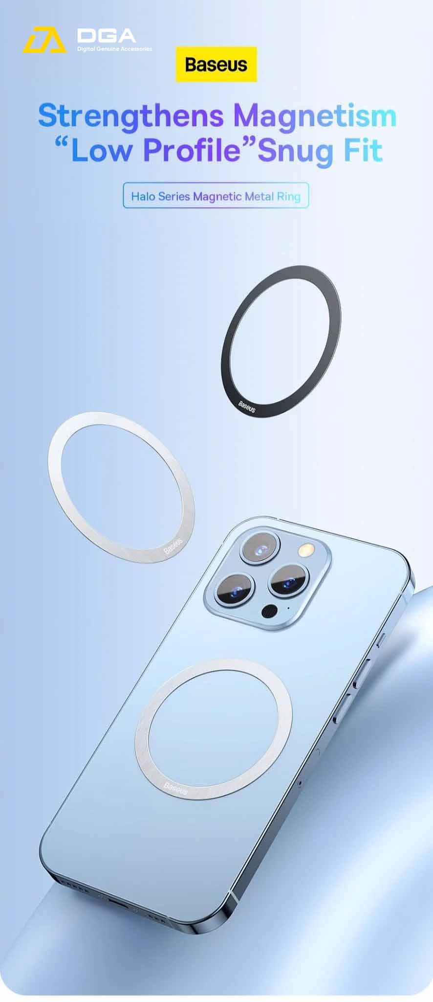 Chi Tiết Sản Phẩm Vòng Kim Loại MagSafe Baseus Halo Series Magnetic Metal Ring cho iPhone 13/12 Series ( Bộ 2 miếng, Hút nam châm, Dùng cho phụ kiện MagSafe Apple)
