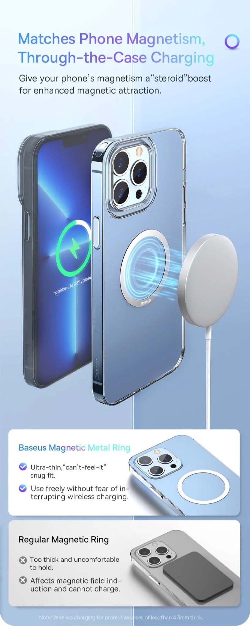 Tính năng độc đáo và tiện ích nhất trên dòng iPhone 12/13 Series là khi sử dụng cùng hệ sinh thái các phụ kiện chuẩn MagSafe của Apple . Tuy nhiên nếu bạn đang sử dụng các loại ốp lưng bảo vệ sẽ làm giảm đáng kể lực hút của mặt lưng iPhone với các phụ kiện MagSafe này ( thậm chí khi lực hút yếu các đế sạc không dây chỉ nhận sạc thông thường mà không nhận được chuẩn sạc không dây MagSafe) . Điều này làm giảm đáng kể trải nghiệm và hiệu quả sử dụng của các loại phụ kiện MagSafe . Hoặc bạn đang sở hữu các dòng iPhone 11 (hoặc cũ hơn)/ Smartphone Android như Samsung/ Huawei/ OPPO Xiaomi nhưng lại muốn sử dụng với các loại phụ kiện MagSafe hoặc các đế giữ điện thoại bằng nam châm nhưng không tương thích do mặt lưng không được trang bị nam châm . Trong trường hợp này bạn chỉ cần trang bị Bộ vòng kim loại Magsafe Baseus Halo Series Magnetic là có thể khắc phục hiệu quả tất cả các nhược điểm nói trên .