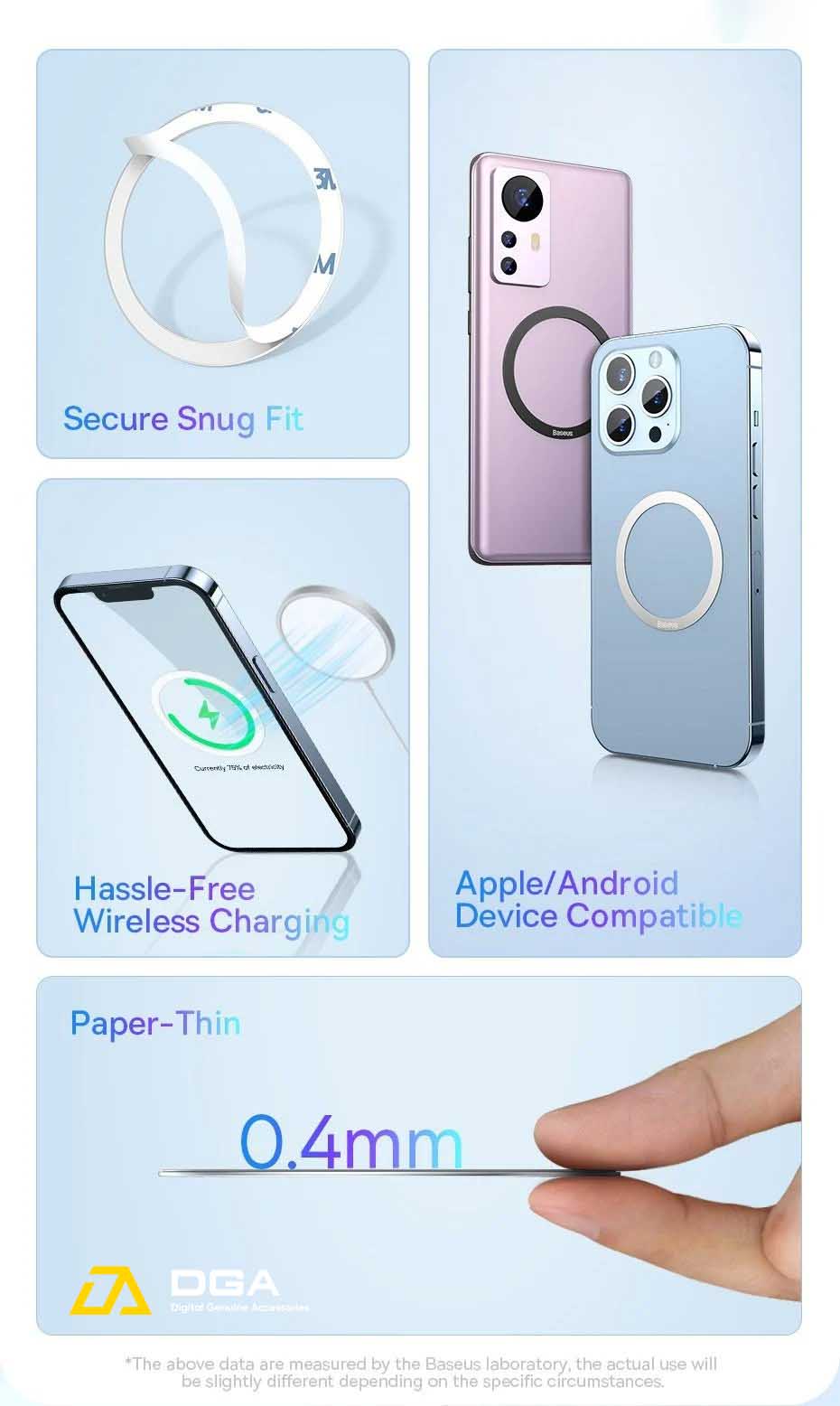 - Thiết kế mỏng nhẹ nhưng dán chặc , cải thiện hiệu suất sạc không dây cho điện thoại của bạn.